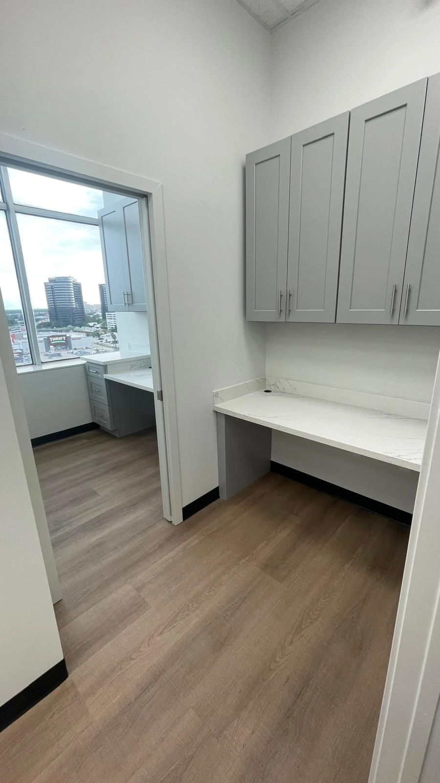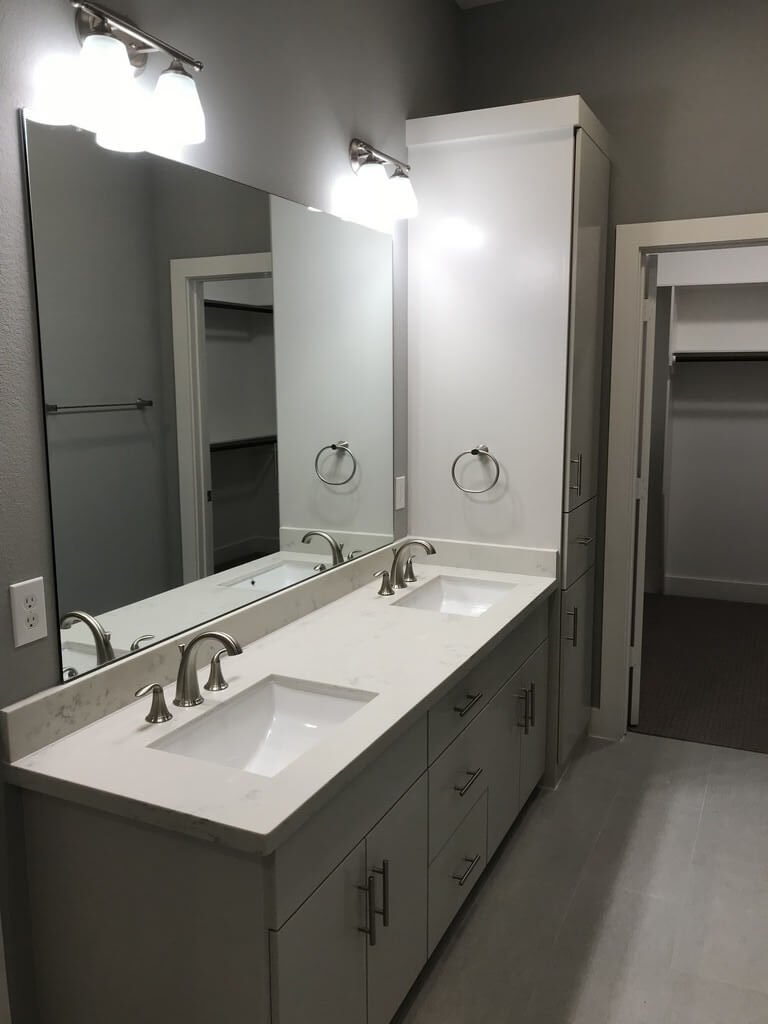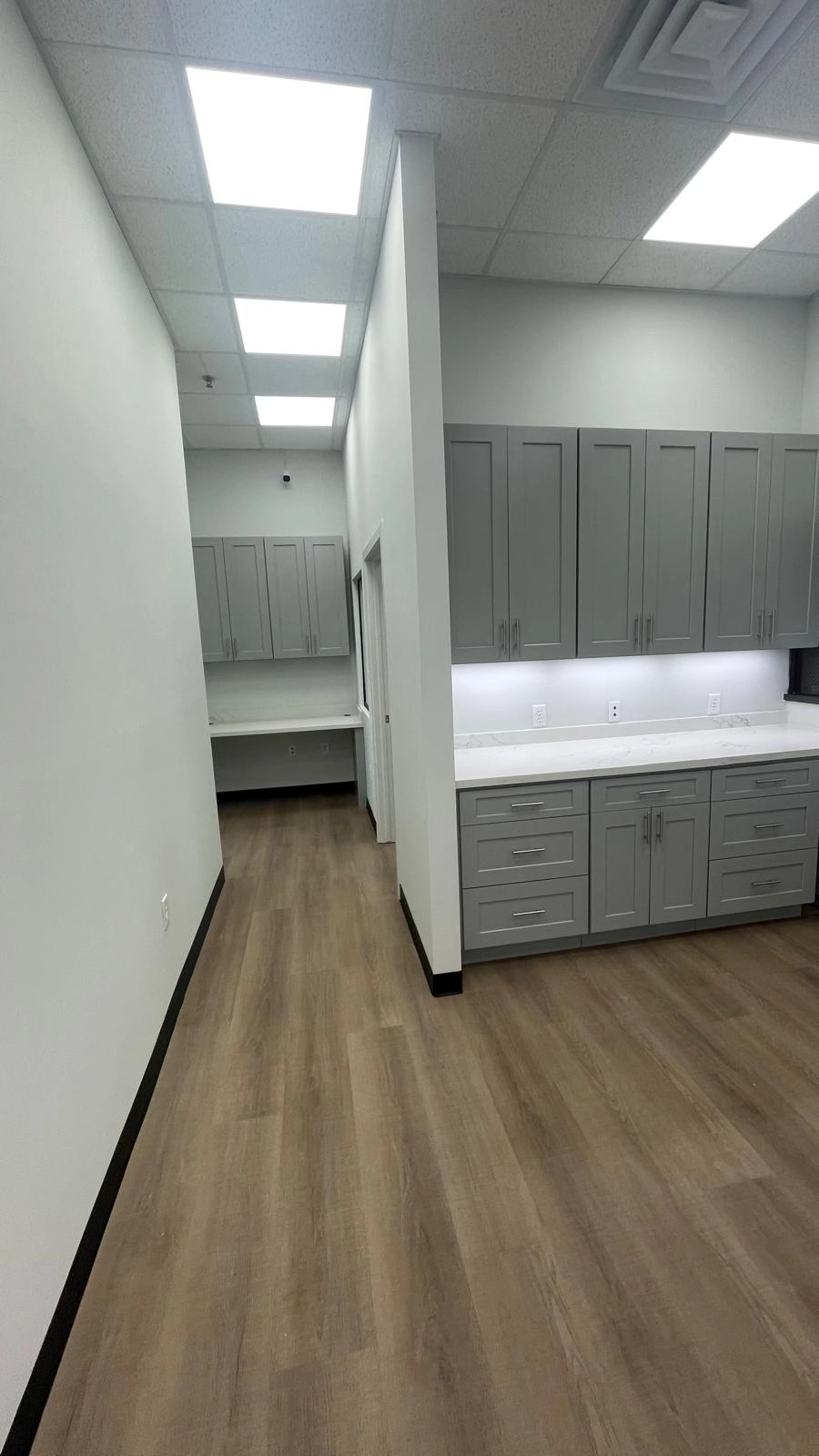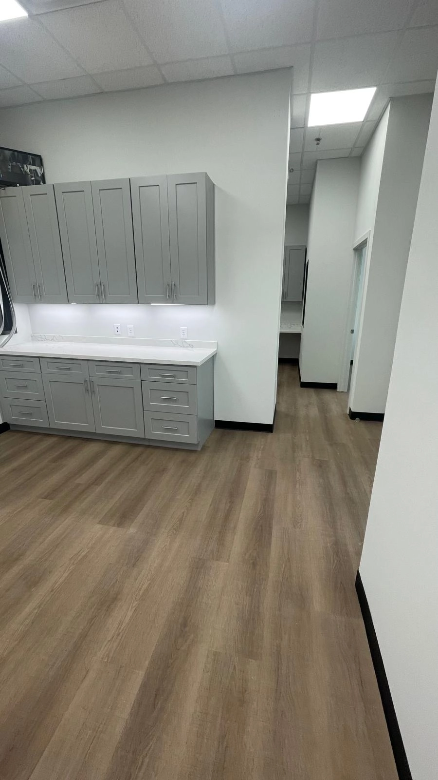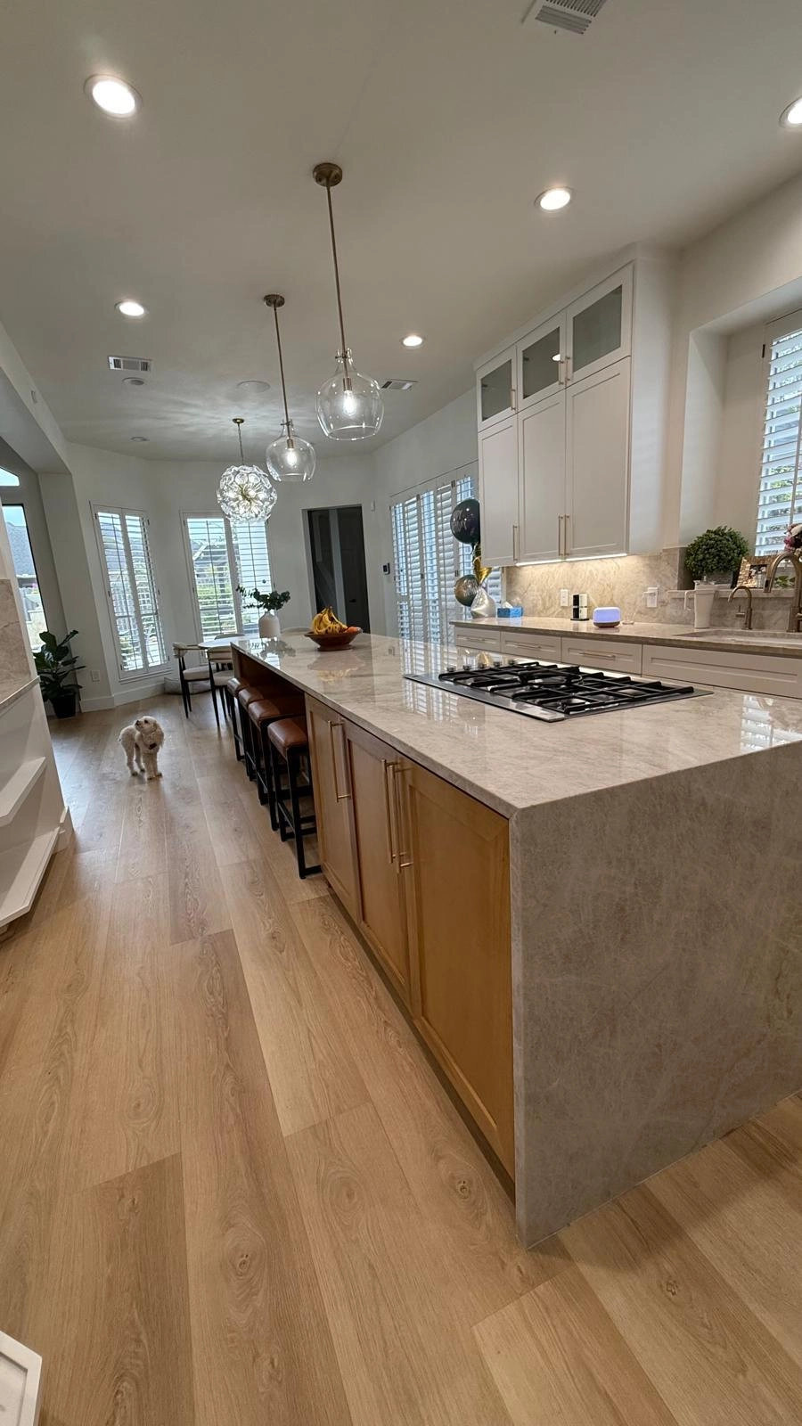 In our recent kitchen remodel, we transformed the space with a blend of practicality and style. The cabinets received a fresh look with a skillfully applied coat of paint, while pre-fabricated and custom countertops added both functionality and aesthetic appeal. The custom glasswork on cabinets introduced a touch of sophistication, complemented by an exotic backsplash that became a focal point of elegance. The addition of a kitchen hood not only enhanced ventilation but also contributed to a sleek and modern atmosphere. To add a hint of glamour, we painted the walls with a subtle glitter finish, elevating the overall aesthetic of the renovated kitchen.